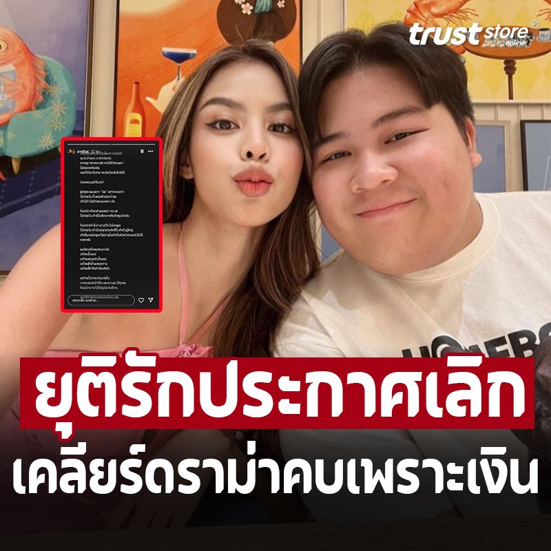 “สวัสดีครับพี่ ๆ ทุกคน วันนี้ผมจะมาแจ้งว่าผมกับน้ำเพชร เราเลิกกันครับ สาเหตุมาจากความคิด การใช้ชีวิตของเราไม่ค่อยตรงกันครับ เลยทำให้เราไม่สามารถเดินด้วยกันไปต่อได้