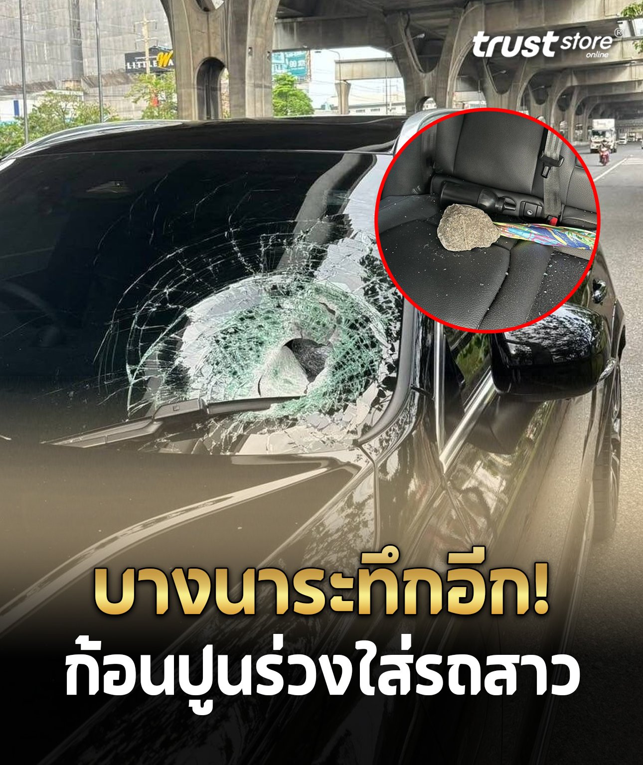 อีกแล้ว! ก้อนปูนตกใส่รถ ถนนบางนาขาเข้า กระจกแตกโชคดีไม่มีคนเจ็บ