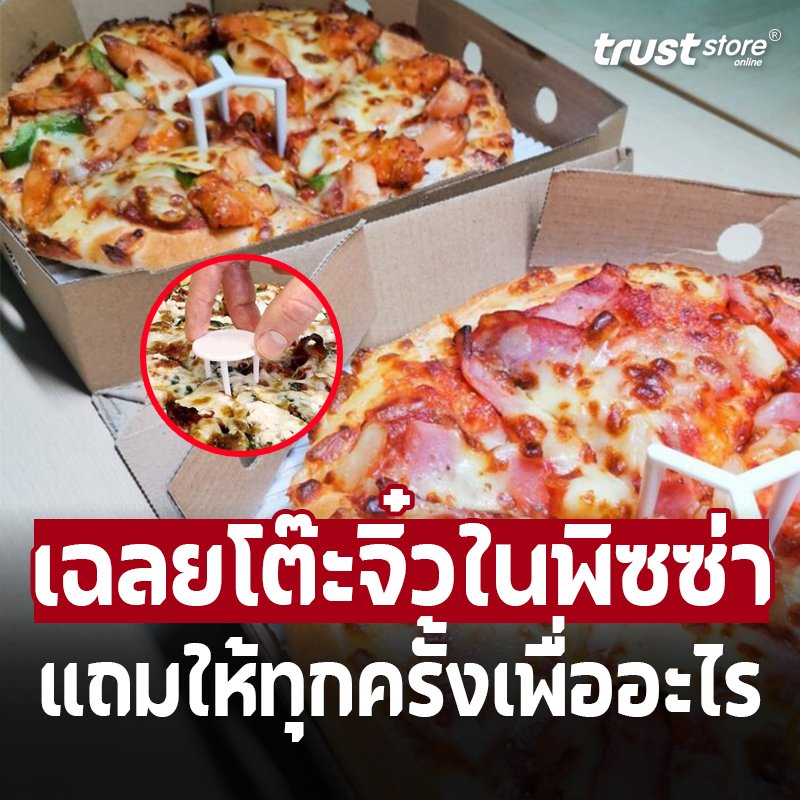 สังเกตเป็นอย่างแรกนั้นอาจจะไม่ใช่พิซซ่าที่เราสั่ง แต่มันคือ พลาสติกสามขาสีขาวที่เสียบมา
