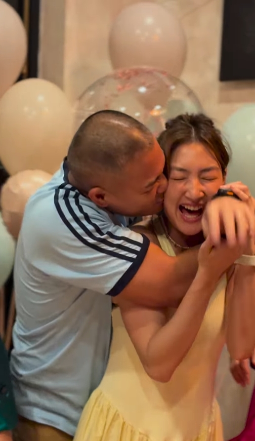 และในช่วงเวลาพิเศษนี้เอง สารวัตรหมี ได้โผเข้ากอดและหอมแก้มฟอดใหญ่ ตามเสียงเชียร์ให้จูบเลยๆ