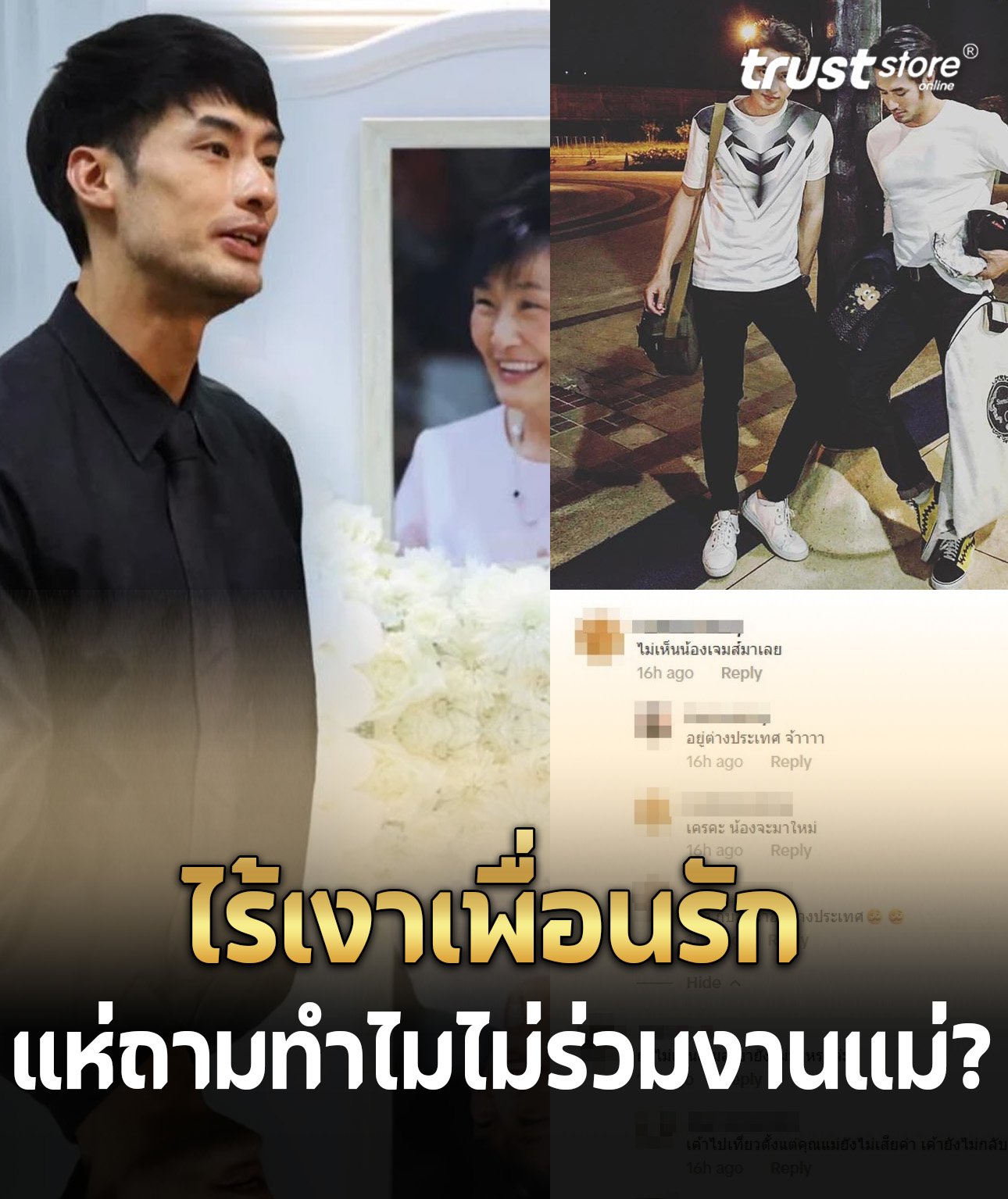 แต่ชาวเน็ตก็สงสัยว่า ทำไมเพื่อนซี้ในแก๊ง คนดีที่ไหนอย่าง เจมส์ จิรายุ ไม่ได้มาร่วมงานอาลัยคุณแม่งามทิพย์ อาทิ ‘ไม่เห็นน้องเจมส์มาเลย’ , ‘ยังไม่เห็นเจมส์เขายังไม่มาหรอค่ะ’ ซึ่งก็มีหลายคนไขข้อสงสัยว่า หนุ่มเจมส์จิอยู่ต่างประเทศเมื่อเข้าไปส่อง IG ของหนุ่มเจมส์จิ ก็พบว่าเจ้าตัวไปเที่ยวต่างประเทศมาหลายวันแล้ว ยังไม่ได้กลับเมืองไทยนั่นเองค่ะ