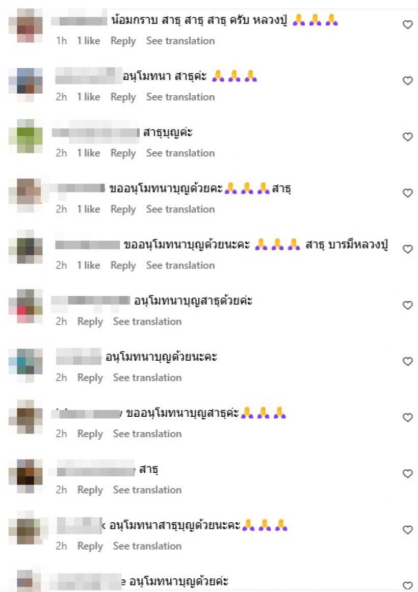 “วันนี้ได้มากราบหลวงปู่ศิลา หลวงปู่ทักว่า ช่วยคนเยอะนะเนี่ย แต่ชาติเนี่ยจะรวยอยู่ 70% ที่เหลืออีก 30% ชอบเอาไปช่วยคน แต่ชาติหน้าจะรวยมาก แล้วท่านก็ถามว่าตอนนี้กำลังจะซื้อหรือสร้างที่อะไรอยู่ใช่ไหม? ก็เลยบอกว่าตอนนี้หนูกำลังทำมูลนิธิองค์กรทำดีตรงรังสิตคลองแปด