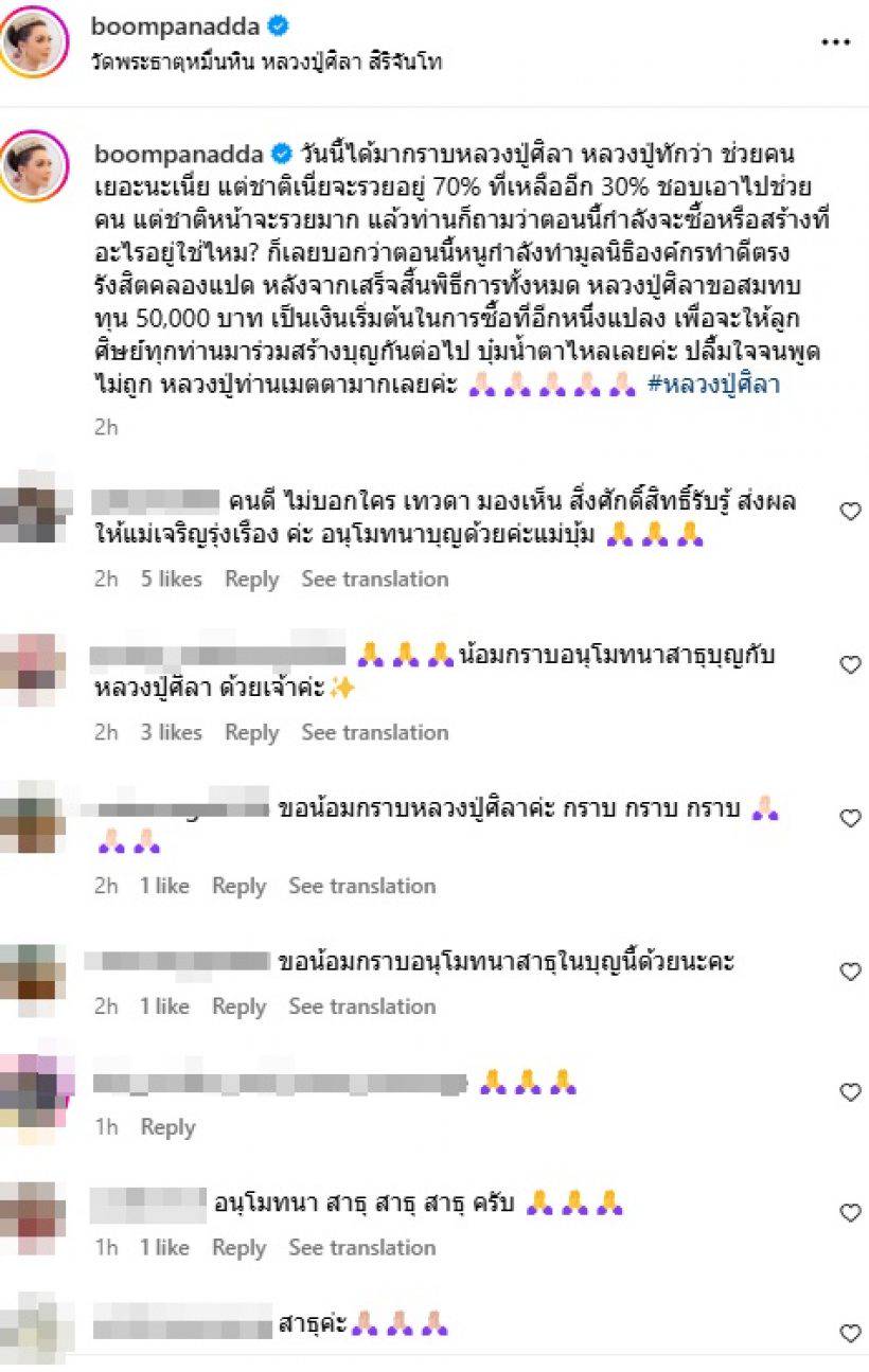 อีกหนึ่งดาราสาวที่สายบุญมากๆสำหรับ บุ๋ม ปนัดดา ล่าสุดเธอได้มีโอกาสเดินทางไปกราบหลวงปู่ศิลา ที่วัดพระธาตุหมื่นหิน หลวงปู่ศิลา สิริจันโท โดยโพสต์ภาพลงอินสตราแกรมส่วนตัว @boompanadda พร้อมแคปชั่นระบุว่า