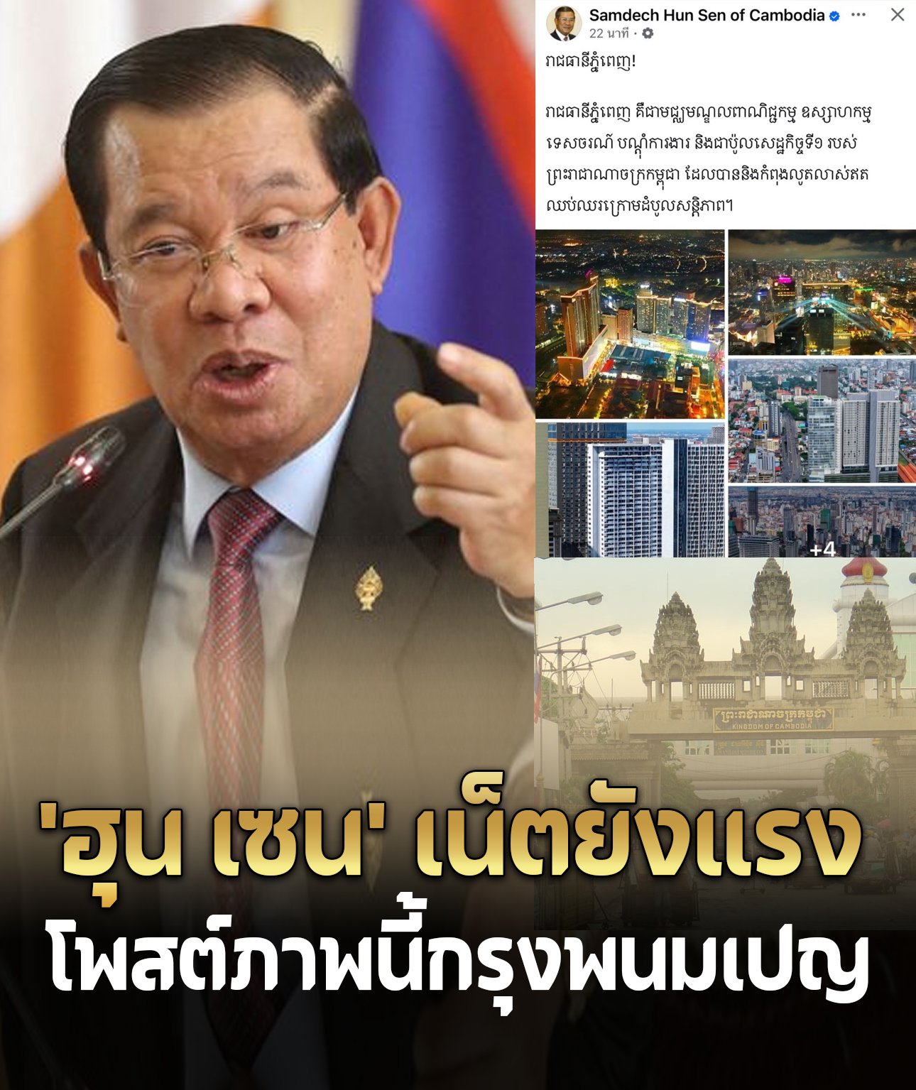 ล่าสุด ฮุน เซน ได้โพสต์ข้อความพร้อมรูปภาพผ่านเฟซบุ๊กส่วนตัวอีกครั้ง โดยเป็นภาพวิวทิวทัศน์กรุงพนมเปญ เมืองหลวงของกัมพูชา พร้อมระบุข้อความดังนี้