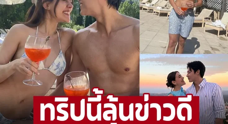 โดยภาพนี้ทั้งคู่นั่งชิลๆอยู่ที่ริมสระว่ายน้ำ คุณภรรยาสวยเเซ่บส่วนคุณสามีก็ซิกเเพ็คเเน่นไม่เเพ้กัน