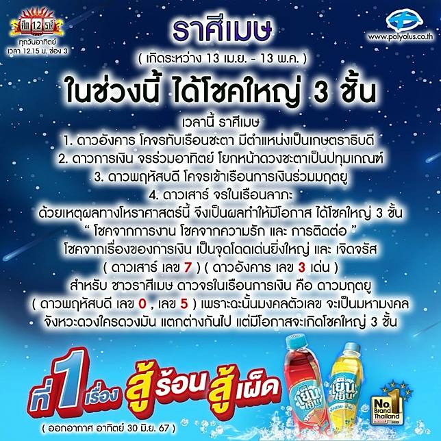 ข่าวบันเทิงเช็กด่วน! ‘หมอลักษณ์’ ฟันธงในช่วงนี้ ราศีนี้ได้โชคใหญ่ 3 ชั้น 30 มิถุนายน 2024 - by belle truststore วันที่ 30 มิ.ย.67 “ลักษณ์ ราชสีห์” หรือ “หมอลักษณ์ ฟันธง” หมอดูชื่อดังของเมืองไทย ได้ทำนายราศีผ่านอินสตราแกรม @polyplus_jad_hai ระบุว่า…#ราศีเมษ ในช่วงนี้ ได้โชคใหญ่ 3 ชั้น