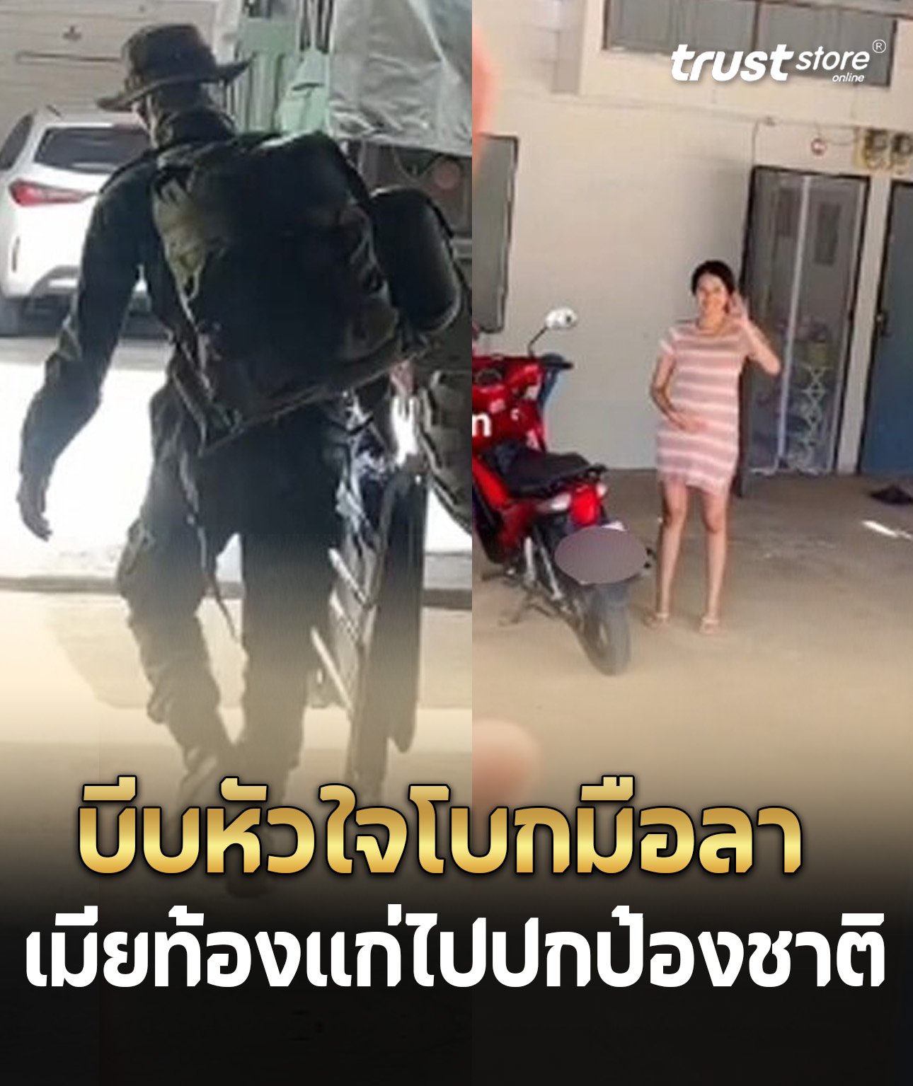 ส่วนในคลิประบุว่า “จะรีบกลับมานะ ดูแลตัวเองและลูกดีๆ นะ” ซึ่งผู้โพสต์กำลังโบกมือร่ำลาภรรยาที่กำลังตั้งครรภ์อยู่ เพื่อไปปฏิบัติภารกิจป้องกันแนวชายแดน โดยภรรยาก็ใช้มือประคองลูกในท้อง แล้วโบกมือลา พรางเช็ดน้ำตาไปด้วย