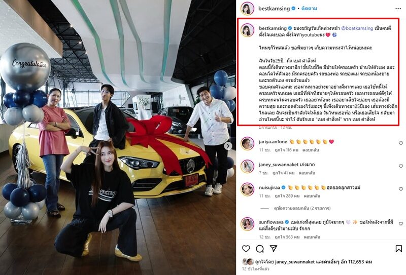 สุดจริง เบสท์ คำสิงห์ ถอยเบนซ์ป้ายแดง ของขวัญวันเกิด โบ๊ท น้องชาย อีก1ขั้นในชีวิตเผยทำอะไรให้กับครอบครัวไปแล้วบ้าง บอกตัวเองอย่าท้อต้องมีความสุข แห่ชมเก่งมาก