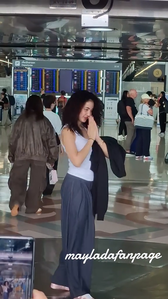 โดยในช่วงเช้า โบว์ เมลดา เดินทางมาสนามบินสุวรรณภูมิ มากับลุคใหม่ที่น่ารักสดใสมาก ผมยาวหยิกแบบสบายๆ โดยแฟนๆ ที่ทราบข่าวต่างเดินทางมาส่งกันอย่างเนืองแน่นและอบอุ่นมาก
