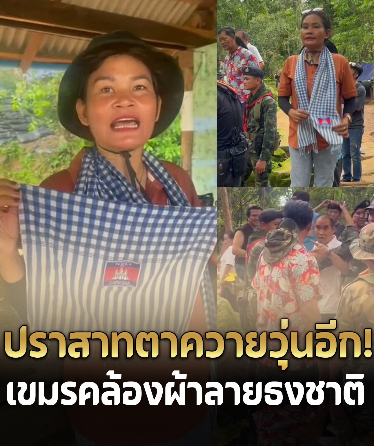 หวิดวุ่นอีก หญิงคล้องผ้ารูปธงชาติกัมพูชา ไม่พอใจ “ทหารไทย” ห้ามแสดงเชิงสัญลักษณ์ โวย “ปราสาทตาควาย” เป็นของเขมร ทำนักท่องเที่ยวไทยเดือด ชี้หน้าเดินปรี่เข้าหา ก่อนถูกจับแยกย้าย