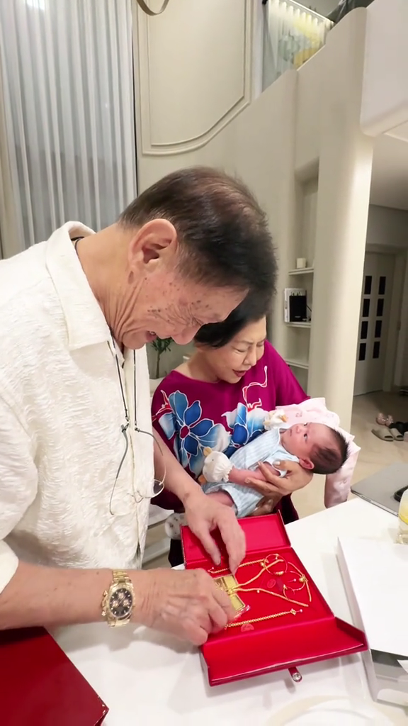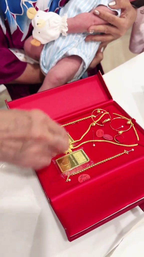 และการมารับขวัญของคุณปู่กับคุณย่านั้น บอกเลยว่าไม่ธรรมดาจริงๆ จากภาพ คุณปู่วิรัตน์ ได้แกะกล่องของขวัญ ซึ่งเปิดออกมาแล้วหลายคนร้องว้าวดังๆ เลย เพราะคุณปู่คุณย่าจัดทองคำเซ็ทใหญ่ไฟกระพริบมารับขวัญ น้องนช่า