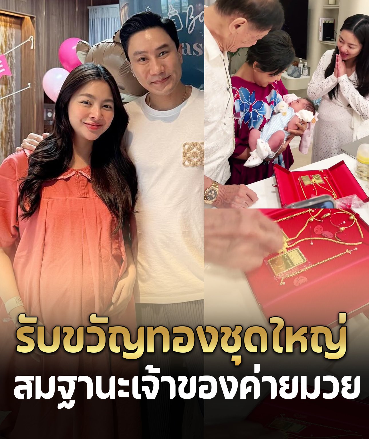 และการมารับขวัญของคุณปู่กับคุณย่านั้น บอกเลยว่าไม่ธรรมดาจริงๆ จากภาพ คุณปู่วิรัตน์ ได้แกะกล่องของขวัญ ซึ่งเปิดออกมาแล้วหลายคนร้องว้าวดังๆ เลย เพราะคุณปู่คุณย่าจัดทองคำเซ็ทใหญ่ไฟกระพริบมารับขวัญ น้องนช่า