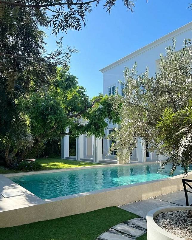 โดยล่าสุดทางทีมงานได้รับรายงานว่าพระเอกหนุ่มชื่อดัง หมาก ได้โพสต์ภาพบริเวณสระว่ายน้ำของบ้านที่ถือเป็นไฮไลท์ ด้วยน้ำสีฟ้าตัดกับตัวบ้านสีขาว และล้อมรอบด้วยต้นไม้ ไม่ว่ามองมุมไหนก็น่าอยู่น่าพักผ่อนไปหมด
