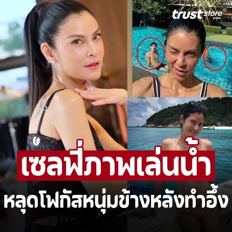หลุดโฟกัส ‘ปิ่น เก็จมณี’ เซลฟี่ภาพเล่นน้ำ แต่หนุ่มข้างหลังทำอึ้ง