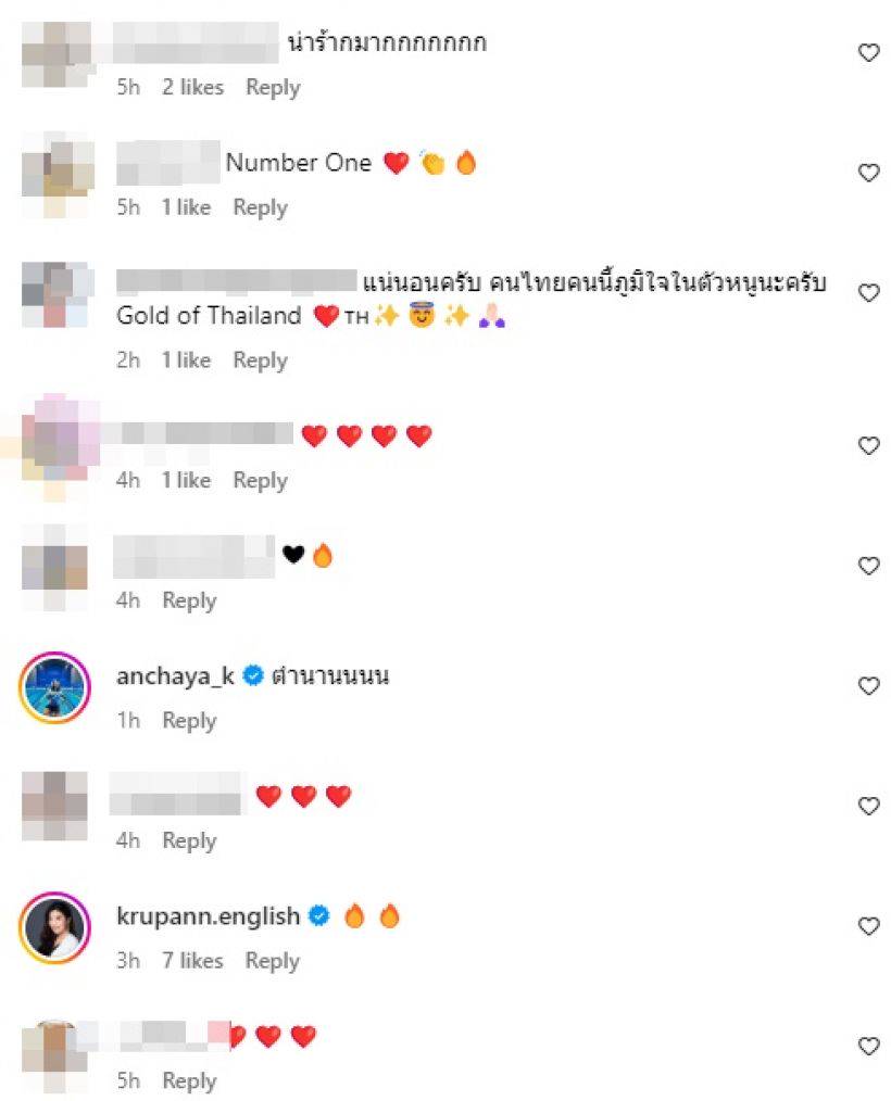 – ขอบคุณจริงๆที่เลือกมาเป็นนักกีฬาให้ทีมชาติไทย เธอจะเป็นที่สุด เป็นตำนาน เป็นประวัติศาสตร์ชาติไทย