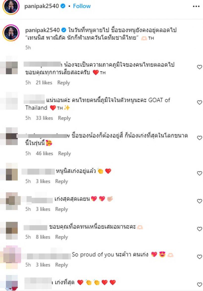 ล่าสุดสาวเทนนิส เคลื่อนไหวโพสต์อินสตราแกรมส่วนตัว @panipak2540 เผยภาพคู่เหรียญทอง พร้อมแคปชั่นระบุว่า ” ในวันที่หนูตายไป ชื่อของหนูยังคงอยู่ตลอดไป “เทนนิส พาณิภัค นักกีฬาเทควันโดทีมชาติไทย” “ ท่ามกลางคนบันเทิงและแฟนคลับทั่วประเทศ แห่คอมเมนต์ชื่นชม อาทิ