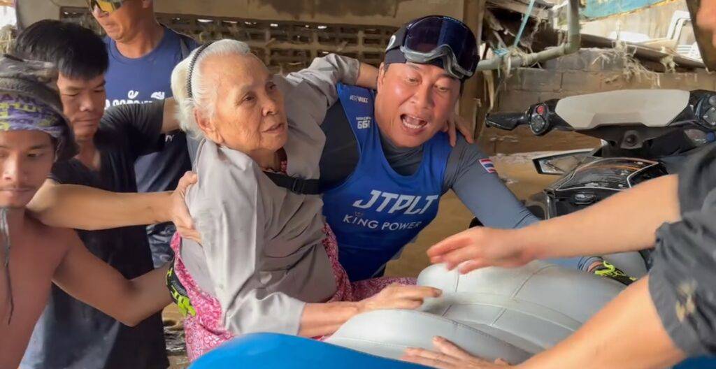 ‘เปิ้ล นาคร’ ช่วยเหลือยายตาบอดน้ำท่วม จ.เชียงราย อย่างปลอดภัย