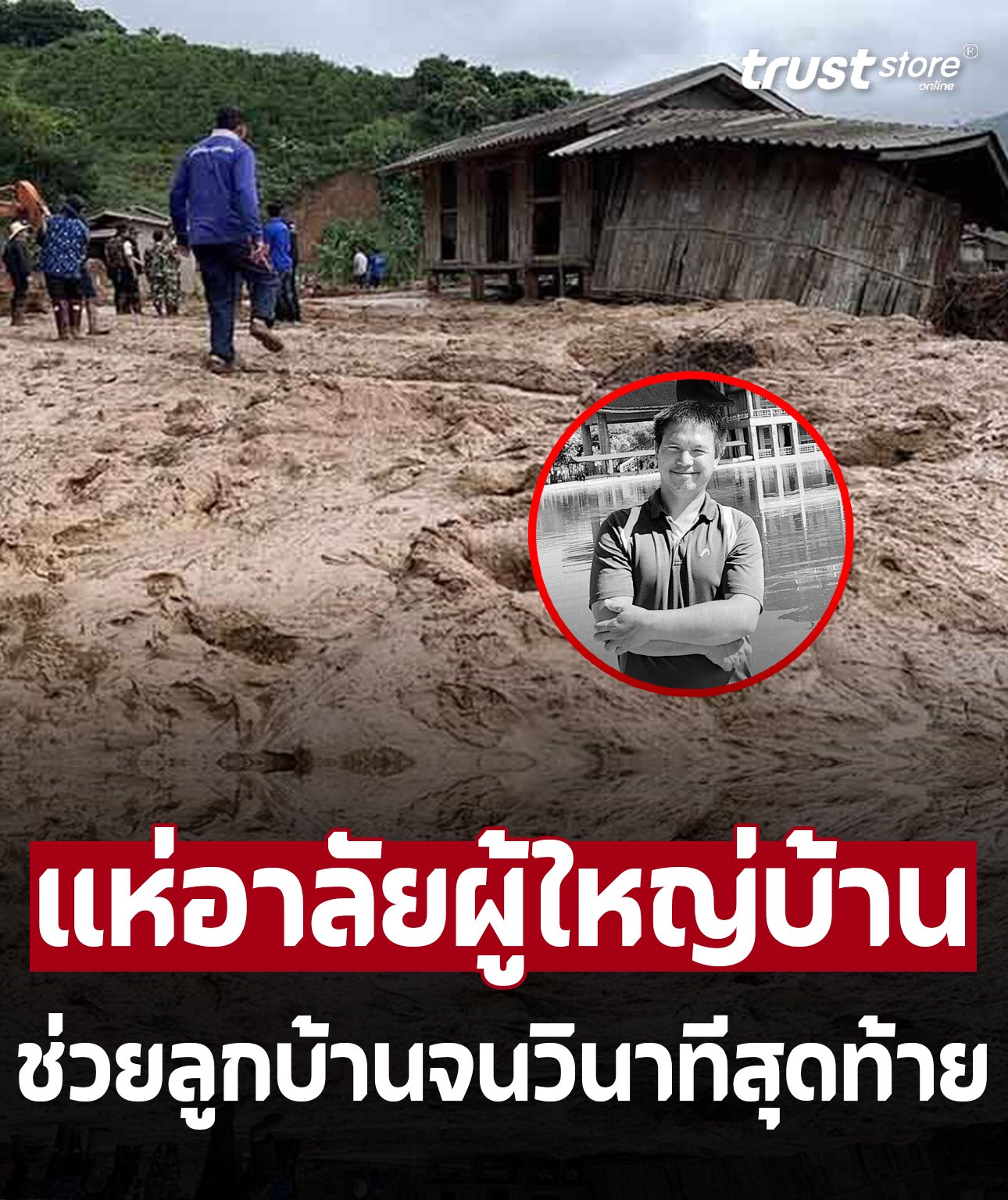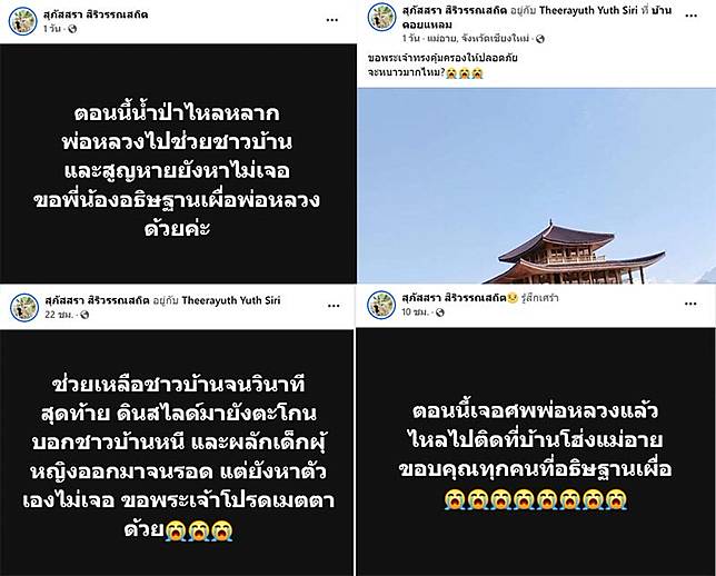 จากนั้นได้โพสต์อีกว่า “ช่วยเหลือชาวบ้านจนวินาทีสุดท้าย ดินสไลด์มายังตะโกนบอกชาวบ้านหนี และผลักเด็กผู้หญิงออกมาจนรอด แต่ยังหาตัวเองไม่เจอ ขอพระเจ้าโปรดเมตตาด้วย”