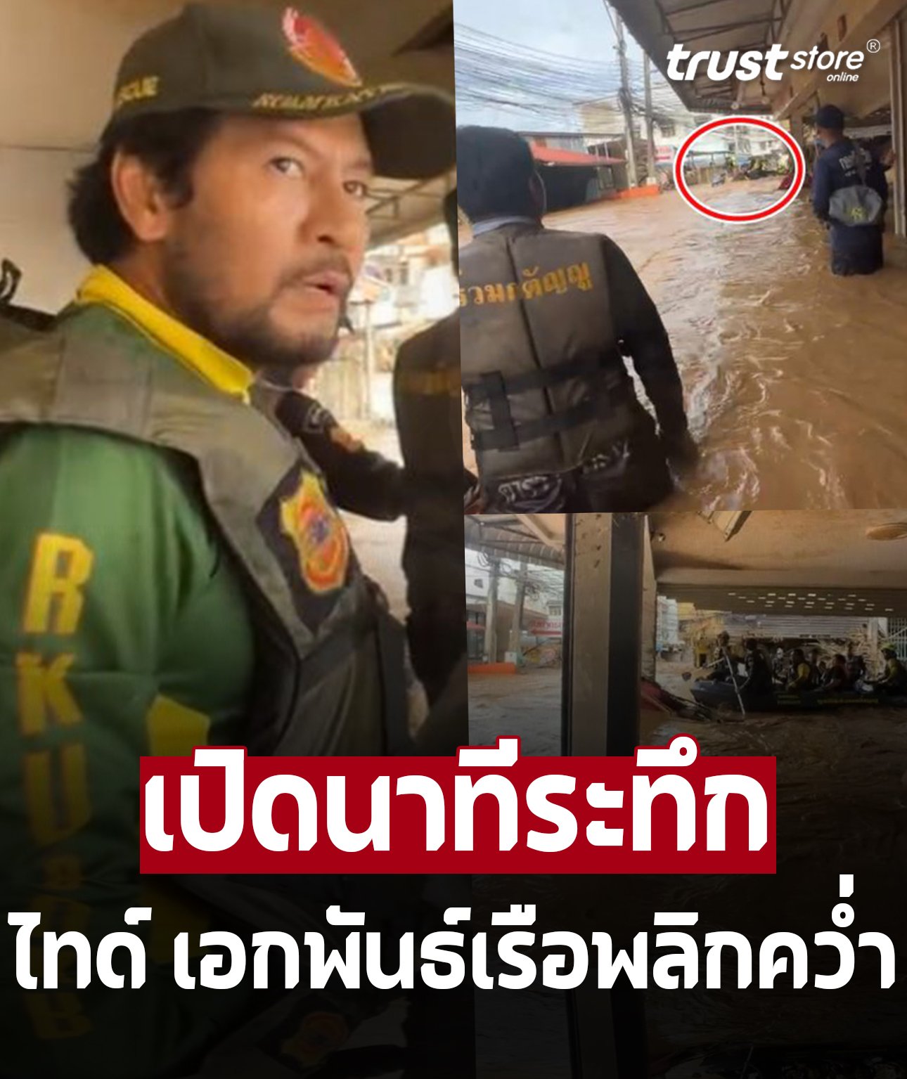 ท๊อป – ไทด์ เอกพันธ์ นำทีมลงพื้นที่ช่วยผู้ประสบภัยน้ำท่วมเชียงราย โดยมีการฝ่ากระแสน้ำเชี่ยวเข้าช่วยเหลือ แต่มีช่วงวินาทีหนึ่งที่เจอประสบอุบัติเหตุเรือพลิกคว่ำท่ามกลางน้ำเชี่ยว บริเวณชุมชนวังทอง อ.แม่สาย ทำทีมงานทุกคนลอยตามน้ำ แต่ทุกคนปลอดภัยดี