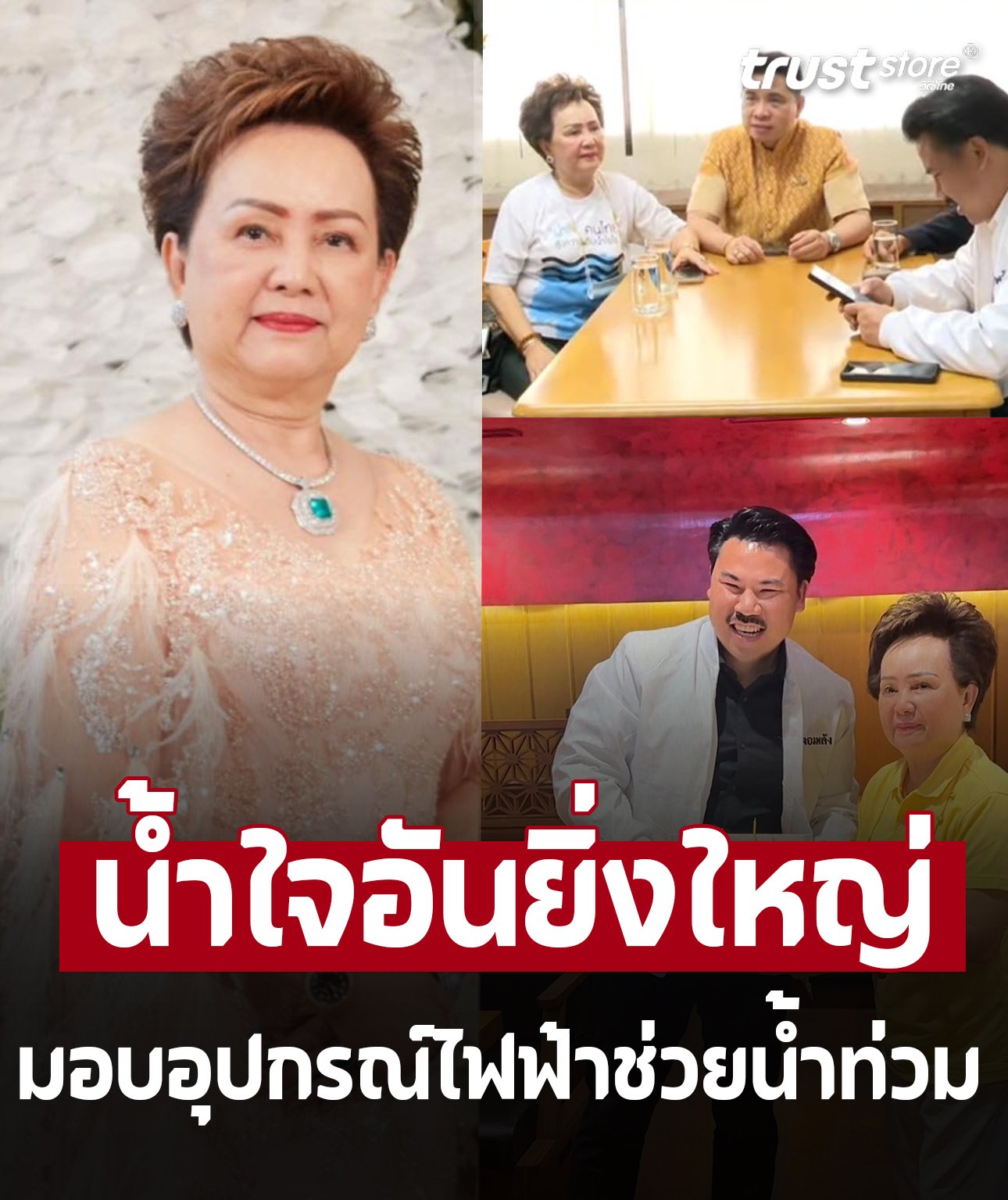 โดยเพจ เจ๊มอย 108 ได้เผยข้อมูลจากรายการ ทุบโต๊ะข่าว ว่า กัน จอมพลัง ได้ติดต่อหา คุณย่าอุไรวรรณ เพื่อขอซื้ออุปกรณ์ไฟฟ้าลอตใหญ่ในราคาพิเศษ เนื่องจากทีมจิตอาสาที่ไปช่วยเหลือฟื้นฟูบ้านของผู้ประสบภัยน้ำท่วมที่แม่สาย จ.เชียงราย บอกว่าไม่มีอุปกรณ์ไฟฟ้า แต่ทางคุณย่าบอกว่าไม่ต้องซื้อ ให้มาเอาที่คุณย่าเลย อยากได้จำนวนเท่าไหร่ก็ให้บอกมา