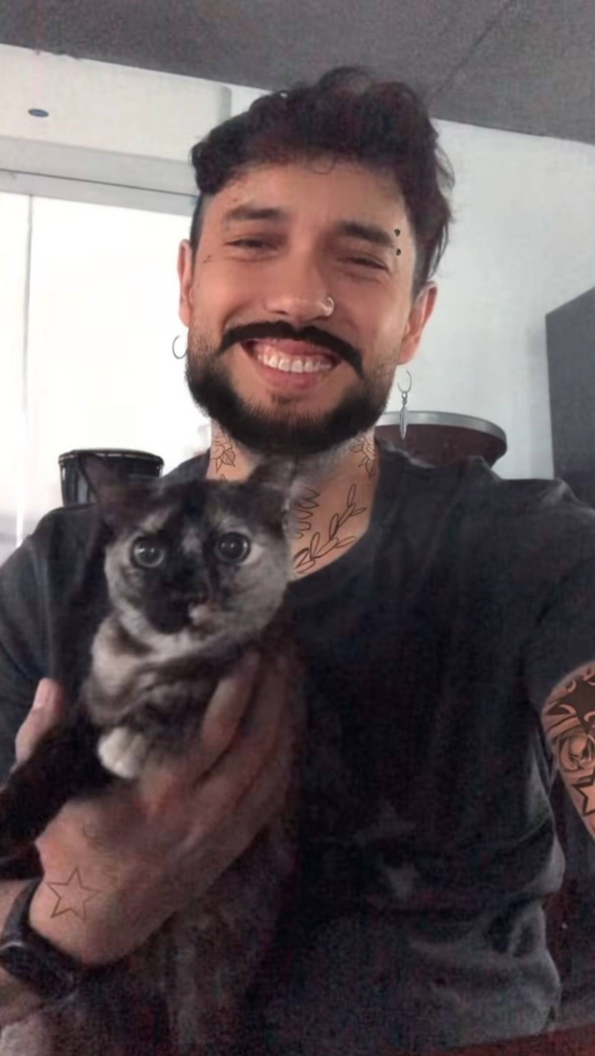 แต่ภาพล่าสุดของ แอนดริว ทำเอาแฟนๆ ถึงกับต้องขยี้ตามองกันดีๆ เพราะเจ้าตัวได้ลงคลิปที่มีหนวดดูคมเข้ม แถมมีรอยสักเต็มแขน แต่นั่งกอดแมว พร้อมยิ้มกว้างให้กับกล้อง และเขียนแคปชั่นว่า