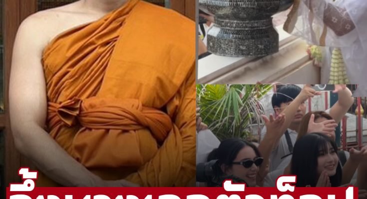 ฮือฮาทั้งวัด! นางเอกตัวท็อป ยืนรับเหรียญโปรยทานในงานบวช ‘มิว’