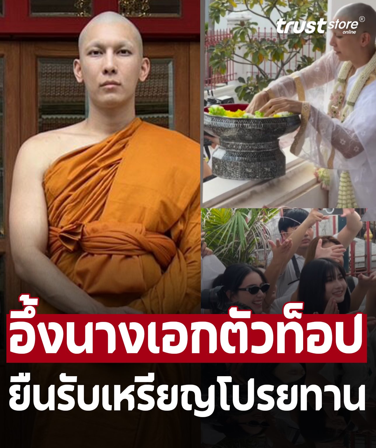 ฮือฮาทั้งวัด! นางเอกตัวท็อป ยืนรับเหรียญโปรยทาน ในงานบวชมิว