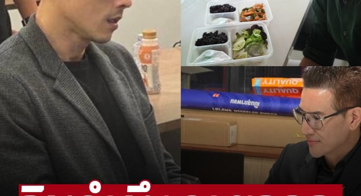 พร้อมเล่าว่า “บอสทั้งหลายกักโรค ห้อง 15 แดนกักโรค (แดน2) ตอนนี้คุมเข้มมาก มีคุณเมธีและผู้ช่วย 2 คนคอยดู น้องกันต์บอกว่าหิวข้าว ผมไม่ได้กินข้าวเลยพี่ กินไข่พะโล้ไปคำหนึ่ง ต้องคายออกมา พี่มีอย่างอื่นไหมครับ เลยได้มาม่า ขนม และโค๊ก ให้ทานรองท้องไปก่อน น้องหน้าทรงญี่ปุ่นนั่งมุมห้อง เครียดมาก #คุณเมธีนั่งคุยเป็นเพื่อนหลายชั่วโมงเพื่อลดความเครียดของนักโทษใหม่”
