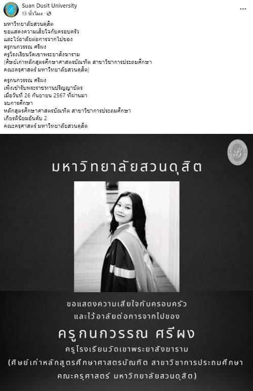 ภายหลังมีรายงานว่าครูทั้ง 3 คนที่ปรากฎในรายชื่อผู้สูญหายนั้นได้เสียชีวิตอยู่ภายในรถบัสไฟไหม้พร้อมกับเด็กนักเรียน โดยเจ้าหน้าที่กู้ภัยพบร่างครูกอดนักเรียนเอาไว้ในอ้อมแขนจนวินาทีสุดท้าย บนโลกออนไลน์หลังทราบข่าวการจากไปของ 3 แม่พิมพ์ต่างก็โพสต์ข้อความแสดงความอาลัย และสดุดีชื่นชมคุณครูทั้ง 3 ท่านที่ยังคงทำหน้าที่ปกป้องดูแลนักเรียนอย่างดีสุด จนลมหายใจสุดท้ายของชีวิต