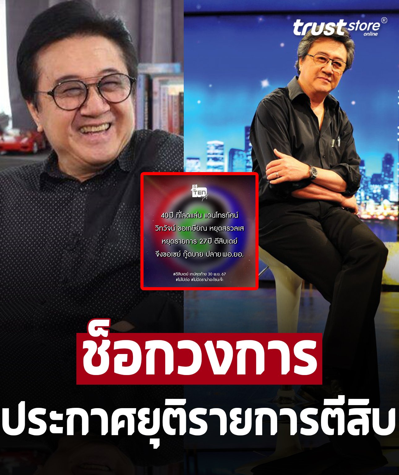 ทำเอาแฟนๆรายการใจหาย หลังเพจตีสิบเดย์ ประกาศข่าวช็อก เจ้าพ่อรายการตีสิบ วิทวัส สุนทรวิเนตร์ ขอเกษียณตัวเอง ในวัย 70 ปี และยุติรายการตีสิบในตำนาน ที่มียาวนานมากกว่า 27 ปี