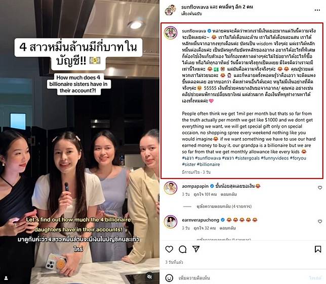 เอวา ปวรวรรณ ทายาทหมื่นล้าน โพสต์ คลิป พร้อมพี่ๆน้องๆ มาเปิดสมุดบัญชีของแต่ละคนครั้งแรกว่ามียอดเงินคนละเท่าไหร่กัน คาดไม่ถึงจริงๆ พร้อมเผยแคปชั่นว่า