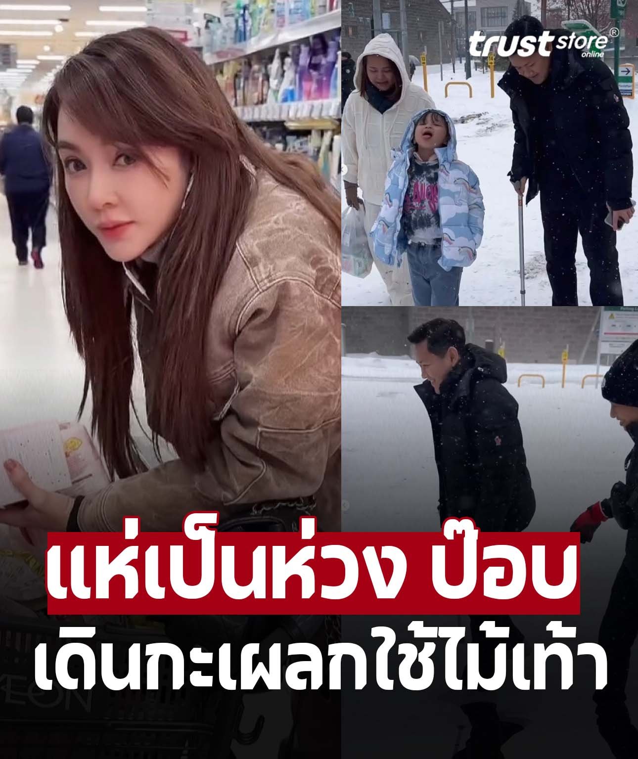 ล่าสุดทั้งคู่พาลูกๆเที่ยวญี่ปุ่น สัมผัสอากาศหนาวกับหิมะโปรยปราย โดยสาวเป้ยโพสต์อินสตราแกรม @ppanward เผยโมเมนต์ช้อปปิ้ง เดินเที่ยวท่ามกลางหิมะโปรยปราย แต่ก็มีช็อตที่ถ่ายอดีตสามี เดินขากะเผลก ใช้ไม้เท้า ทำเอาหลายคนต่างถามไถ่อาการหนุ่มป๊อบด้วยความเป็นห่วง