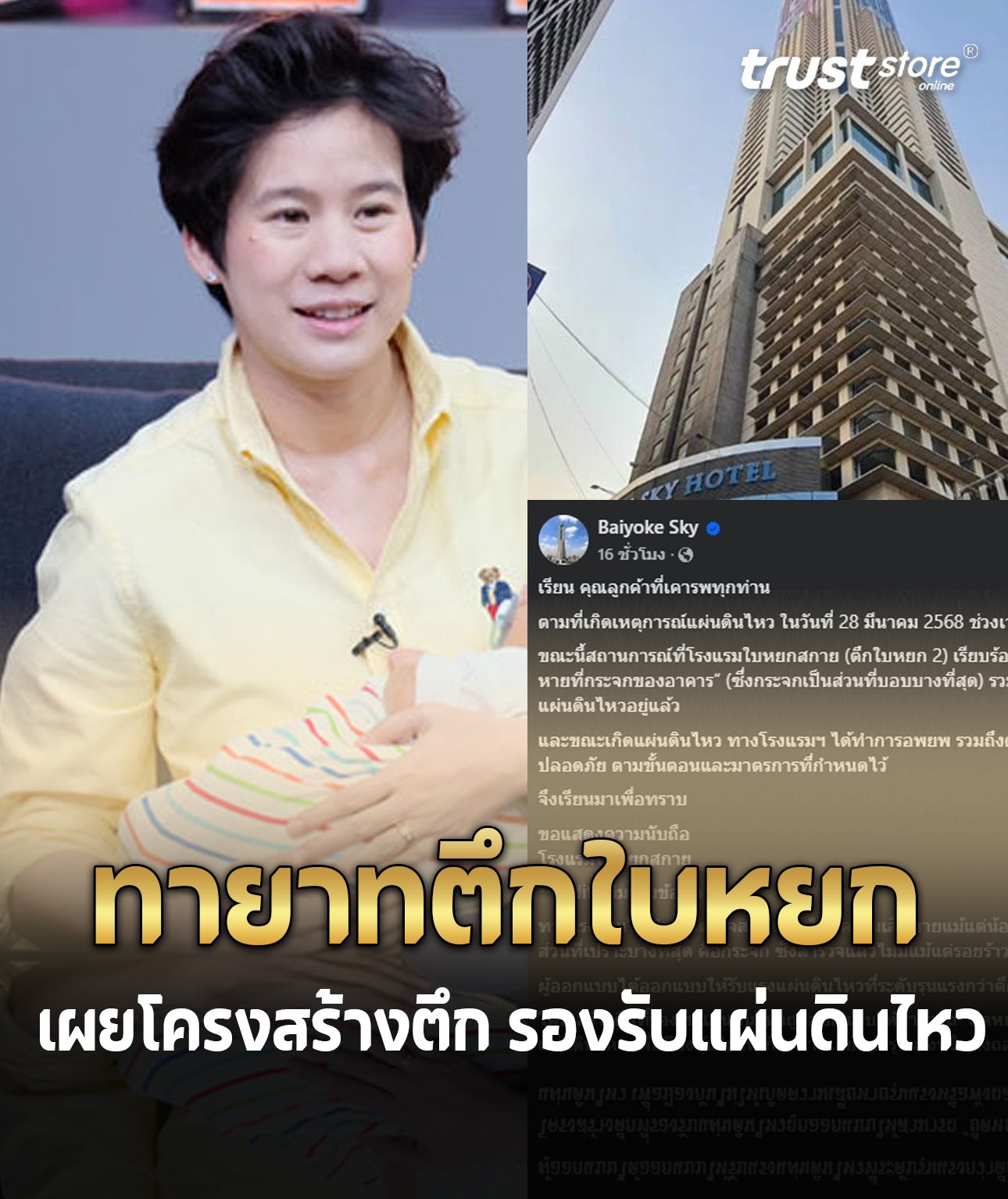 “เรียน คุณลูกค้าที่เคารพทุกท่านตามที่เกิดเหตุการณ์แผ่นดินไหว ในวันที่ 28 มีนาคม 2568 ช่วงเวลา 13.20 น. ที่ผ่านมานั้นขณะนี้สถานการณ์ที่โรงแรมใบหยกสกาย (ตึกใบหยก 2) เรียบร้อยดี จากการตรวจสอบ “ไม่พบร่องรอยความเสียหายที่กระจกของอาคาร” (ซึ่งกระจกเป็นส่วนที่บอบบางที่สุด) รวมถึงอาคารใบหยก 2 ได้ออกแบบมาเพื่อรองรับแผ่นดินไหวอยู่แล้วและขณะเกิดแผ่นดินไหว ทางโรงแรมฯ ได้ทำการอพยพ รวมถึงดูแลลูกค้าทุกท่านออกจากอาคารอย่างปลอดภัย ตามขั้นตอนและมาตรการทึ่กำหนดไว้จึงเรียนมาเพื่อทราบขอแสดงความนับถือโรงแรมใบหยกสกาย ***Edit เพิ่มเติมข้อมูล***ทางโรงแรมได้ทำการตรวจสอบแล้ว ไม่มีความเสียหายแม้แต่น้อยส่วนที่เปราะบางที่สุด คือกระจก ซึ่งสำรวจแล้วไม่มีแม้แต่รอยร้าวผู้ออกแบบได้ออกแบบให้รับแรงแผ่นดินไหวที่ระดับรุนแรงกว่าตึกทั่วไปโครงสร้างตึกที่รองรับแผ่นดินไหวถูกออกแบบให้สามารถ “ยืดหยุ่น” หรือ “โยก” ได้ในระดับที่ควบคุมได้เมื่อเกิดแผ่นดินไหว เพื่อป้องกันไม่ให้เกิดความเสียหายรุนแรงหรือพังถล่ม”นอกจากนี้ยังได้เผยถึงโครงสร้างของตึกที่มีเสาเข็ม 306 ต้น เส้นผ่าศูนย์กลางต้นละ 1.5 เมตร มีความสูงต้นละ 65 เมตร สามารถรับน้ำหนักได้ต้นละ 1 พันตัน