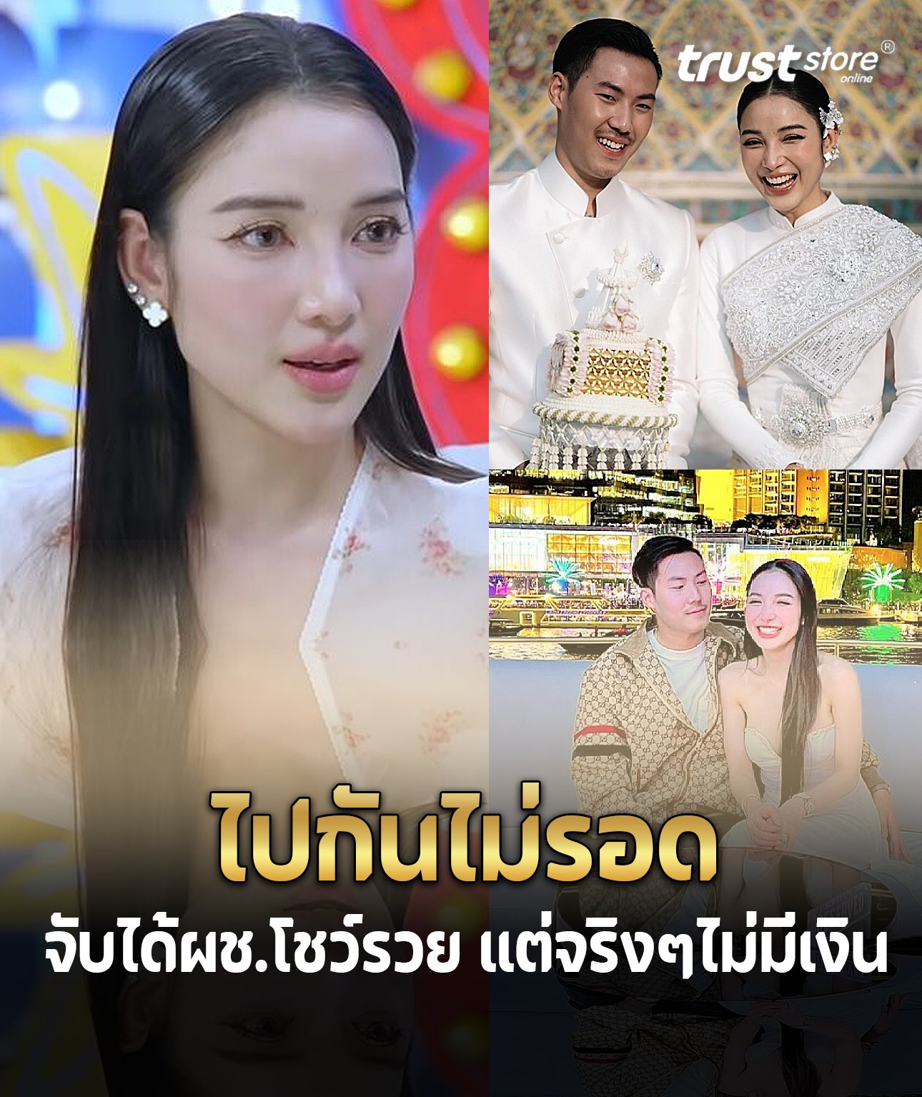 พี ตอบว่า “จริงครับ เขาครบทุกอย่าง สวยมาก รวยด้วย ขยันด้วย เก่งด้วย เก่งทุกอย่าง หายาก ต้องรักษาไว้ให้ดี วันที่ผมเดินเข้ามาในชีวิตเขา ผมไม่มีอะไรเลย แต่เขายังเลือกผม ”