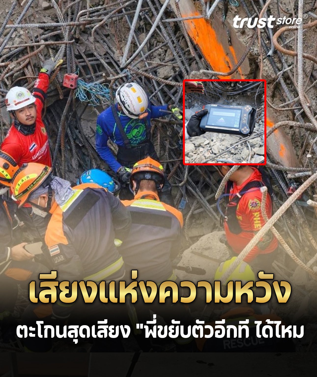 ตอนนี้หน้างาน ทีมกู้ภัยกำลังใช้มือ ช่วยกันคุ้ยหาโพรง เพื่อเข้าไปจุดนั้น ให้เร็วที่สุด