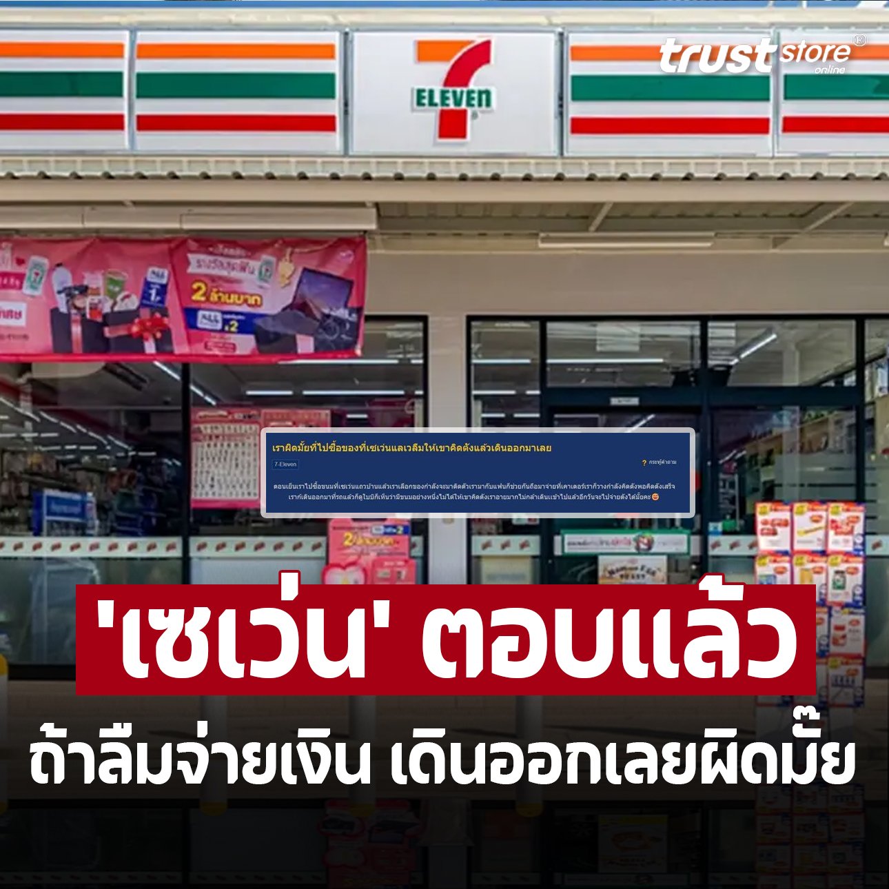 ‘เซเว่นฯ’ ตอบแล้วผิดไหม? ซื้อของที่ 7-11 แล้วลืมให้พนง.คิดเงิน
