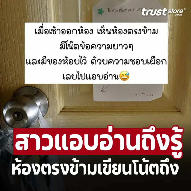 วันที่ 6 มิ.ย.67 สมาชิก TikTok @n.nats_ โพสต์เรื่องราวดีๆ ช่วยฮีลใจ หลังหญิงห้องตรงข้ามเสียบกุญแจทิ้งไว้ เดินไปเคาะบอกแต่ไม่เปิด ตื่นเช้าเจอโน้ตติดไว้ อ่านแล้วรู้สึกดีมากๆ โดยระบุว่า