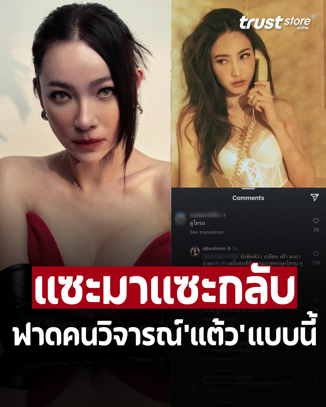 ทำเอาเพื่อนซี้ในวงการอย่าง ต้นหอม ศกุนตลา ทนไม่ไหว เข้ามาคอมเมนต์สวนกลับแบบเจ็บจี๊ดมีสะดุ้งว่า “มึงพิมพ์ว่าเกลียดเขาลงมาง่ายกว่า!!! เหนื่อยกูที่ต้องซูมภาพหาจุดโทรม กูหามา 5 นาทีละ” พร้อมติดแฮชแท็ก #วงมาดิ๊
