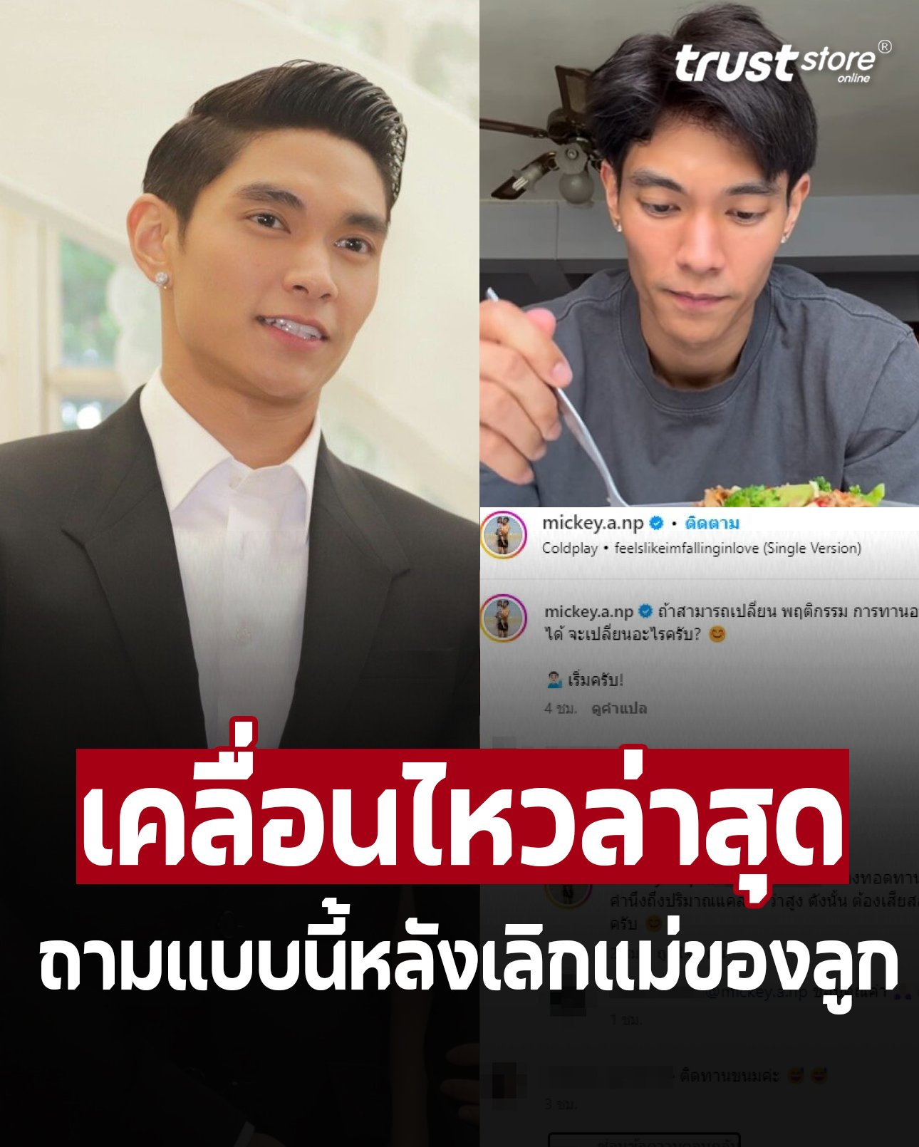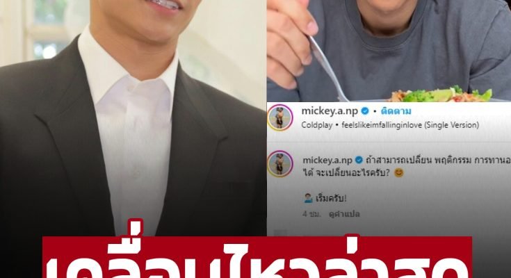 ล่าสุด มิกกี้โพสต์ไอจี @mickey.a.np เผยคลิปกำลังทานอาหาร พร้อมแคปชั่นระบุว่า “ถ้าสามารถเปลี่ยน พฤติกรรม การทานอาหารของตัวเองได้ จะเปลี่ยนอะไรครับ? เริ่มครับ!”