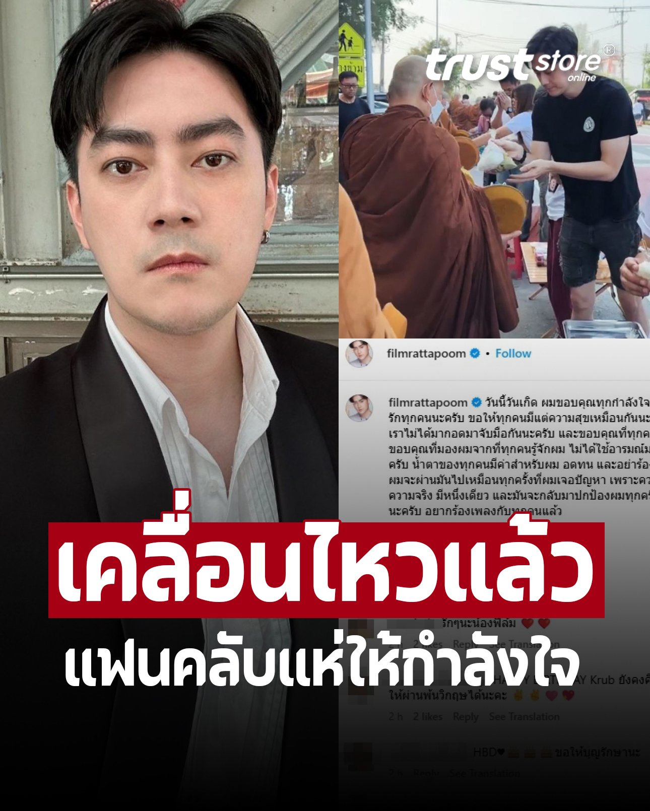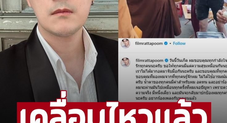 ล่าสุดวันนี้ (17 พ.ย. 67) หนุ่มฟิล์ม เคลื่อนไหวโดยการโพสต์อินสตราแกรม @filmrattapoom เผยภาพกำลังใส่บาตร ในวันเกิดตัวเองอายุครบ 40 ปี พร้อมแคปชั่นระบุว่า “วันนี้วันเกิด ผมขอบคุณทุกกำลังใจ ที่มอบให้ผม ผมรักทุกคนนะครับ ขอให้ทุกคนมีแต่ความสุขเหมือนกันนะครับ ขอโทษที่ปีนี้เราไม่ได้มากอดมาจับมือกันนะครับ และขอบคุณที่ทุกคนเชื่อมั่นในตัวผม ขอบคุณที่มองผมจากที่ทุกคนรู้จักผม ไม่ได้ใช้อารมณ์มาตัดสิน อดทนนะครับ น้ำตาของทุกคนมีค่าสำหรับผม อดทน และอย่าร้องกับสิ่งที่เกิดขึ้น ผมจะผ่านมันไปเหมือนทุกครั้งที่ผมเจอปัญหา เพราะความถูกต้องและความจริง มีหนึ่งเดียว และมันจะกลับมาปกป้องผมทุกครั้ง คิดถึงFFทุกคนนะครับ อยากร้องเพลงกับทุกคนแล้ว”