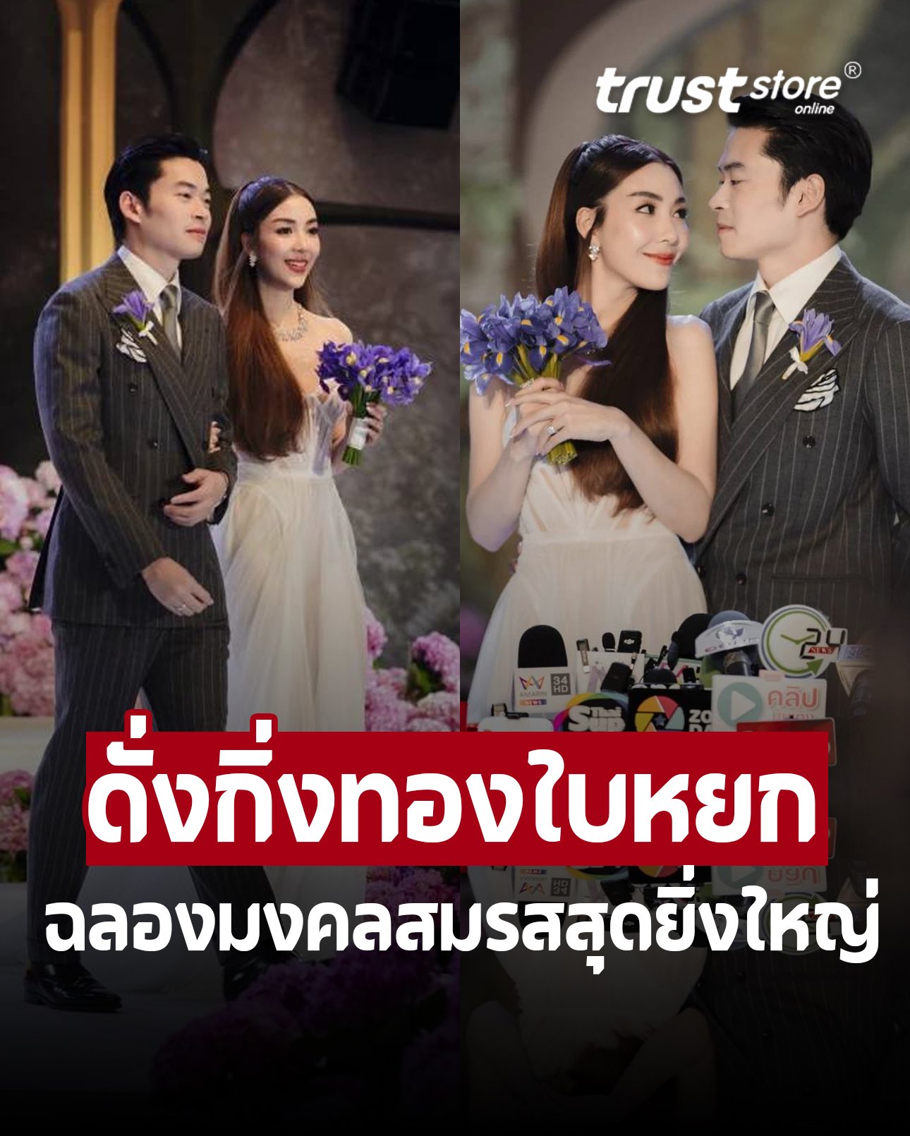 ทั้งนี้ วุ้นเส้น-นิกม์ ยังได้แถลงข่าวเปิดใจผ่านสื่อมวลชน ซึ่งสาววุ้น บอกด้วยว่าวันนี้ใช้ 4 ชุด หนึ่งในนั้นคือชุดแถลงข่าว ชุดนี้วุ้นเส้นตั้งใจนำเข้าจากฮ่องกงมาเลย เป็นแบรนด์ที่บ่งบอกความเป็นตัวเราได้ดี ซึ่งเคยบอกกับเจ้าบ่าวว่าไม่เน้นชุดแพง แต่ขอเป็นชุดที่เราใส่ออกมาแล้วสวยดูดี