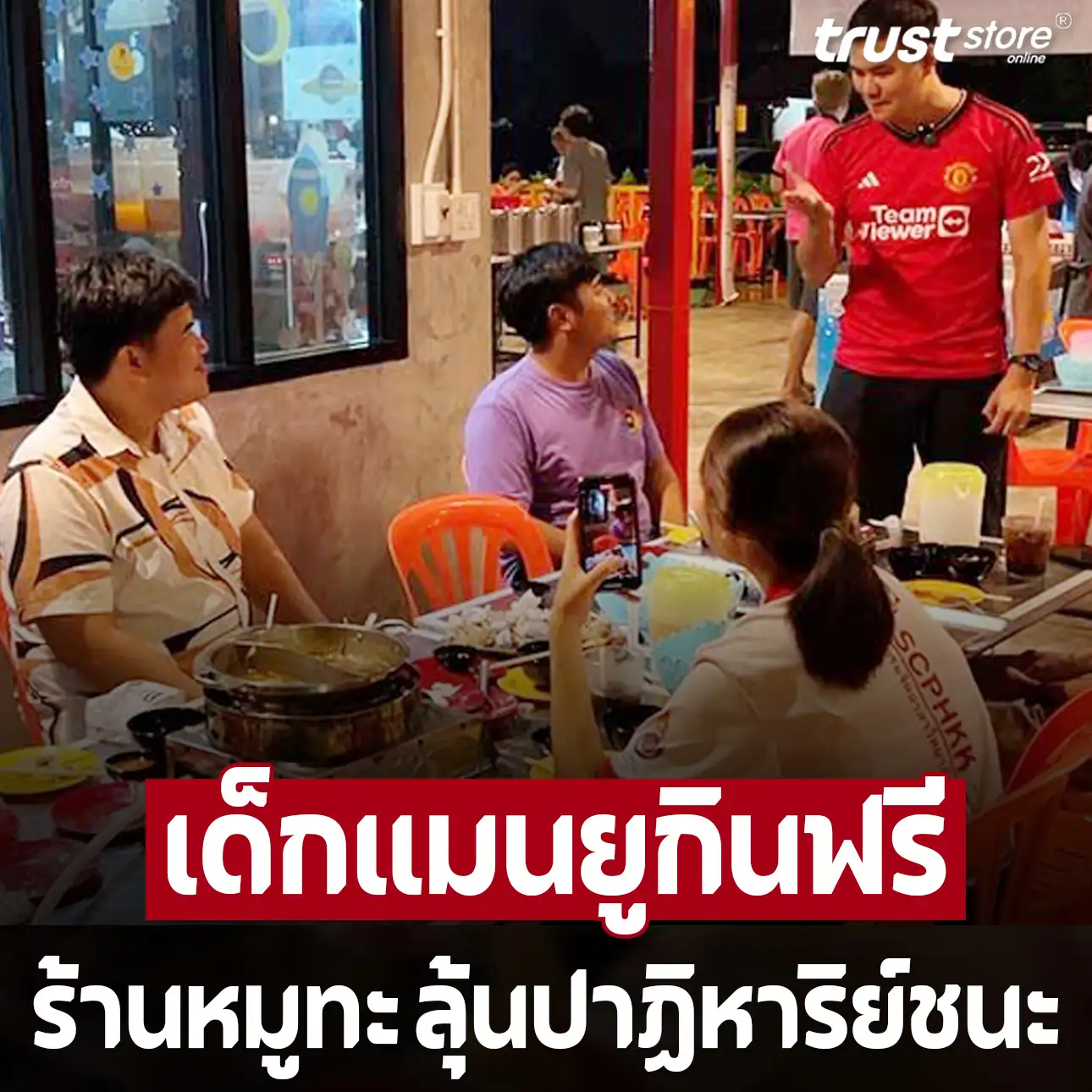 ลุ้นปาฏิหาริย์! เชียร์ปีศาจแดง คว่ำเรือใบ ซิวเอฟเอคัพ ร้านจัดให้กินหมูกระทะฟรี พร้อมแจกลาบเป็ด เปิดเงื่อนไขต้องสวมเสื้อทีมมาด้วย