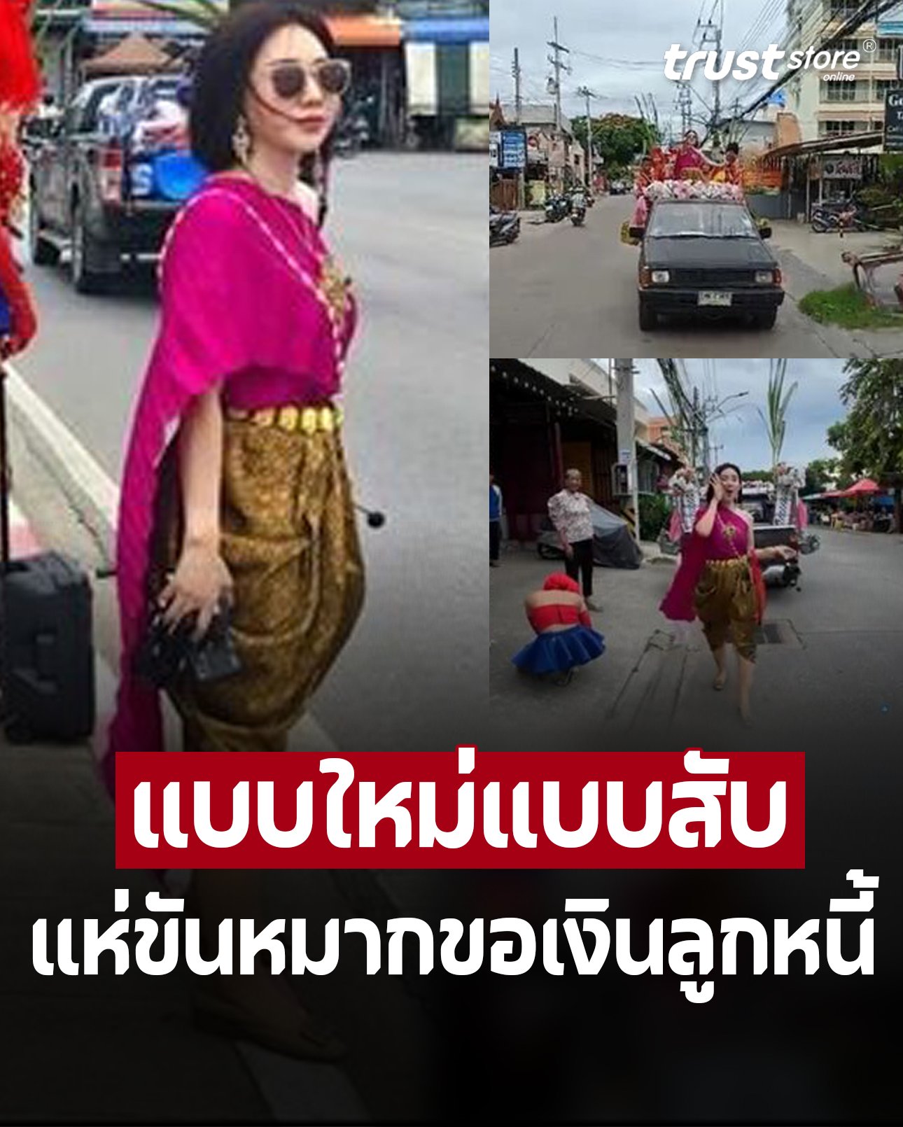 ส่งให้ “เจ๊ปิ่น” จึงขอให้ลูกหนี้มาทำสัญญาใหม่ แต่ปรากฏว่าอีกฝั่งไม่ยอม จนทำเอาเจ๊ปิ่นไม่รู้จะทำอย่างไร จึงต้องขึ้นท้ายรถกระบะ ยกขบวนแห่ขันหมาก พร้อมไลฟ์สดขอเงินคืน ไปตามเส้นทาง