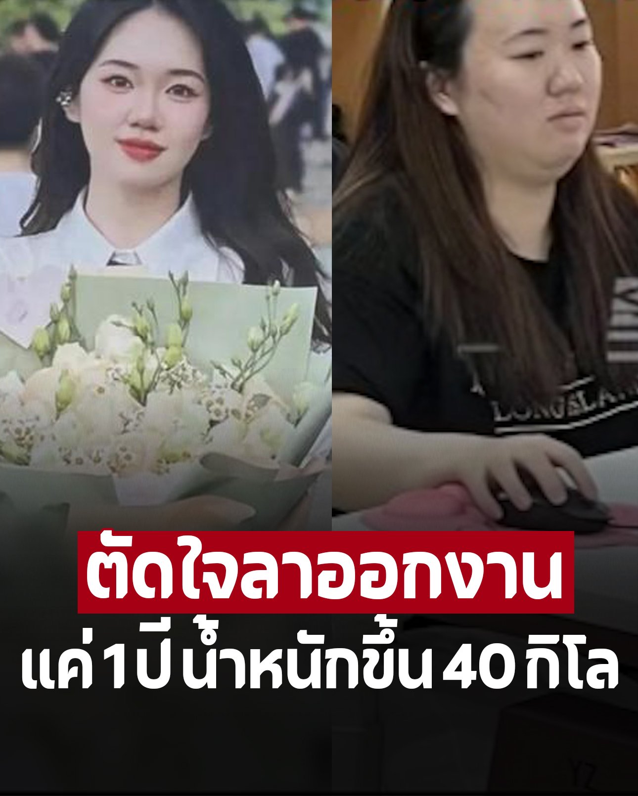แค่ 1 ปี น้ำหนักขึ้น 40 โล สาวตัดสินใจลาออกจากงาน เห็นรูปแล้วมีแต่คนเข้าใจ