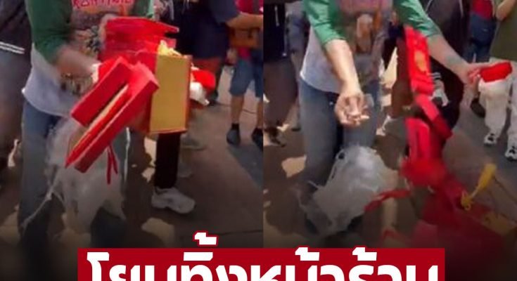 หนุ่มเดือด! หอบของแถมจากสร้อยปี่เซียะ โยนทิ้งหน้าร้าน บอกใครยังไม่มีเอาไปได้