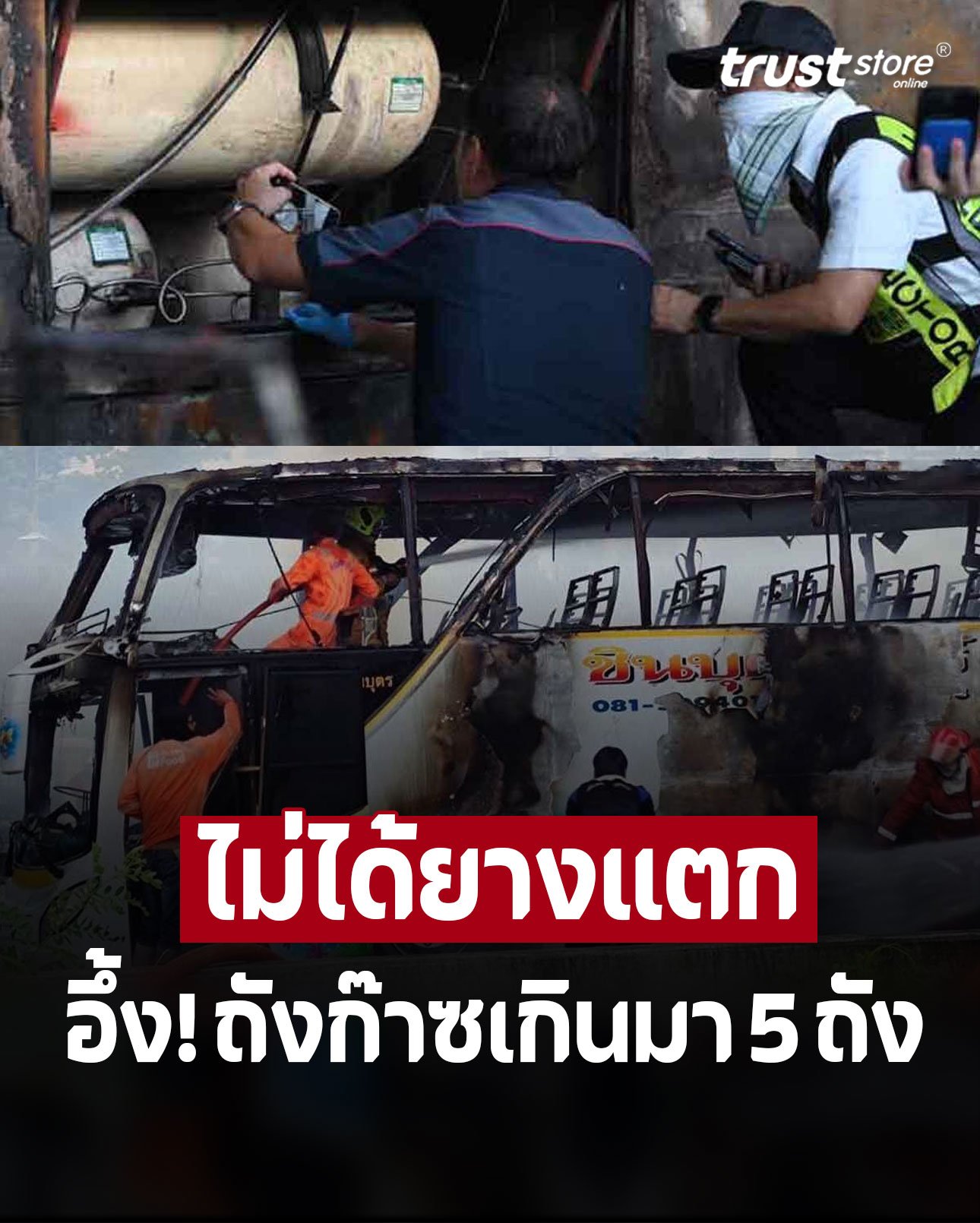 ผลตรวจไฟไหม้รถบัส พบถังก๊าซ 11 ถัง แต่เป็นถังเถื่อน-แอบติดตั้งเพิ่มเองถึง 5 ถัง ชี้ต้นเหตุไม่ใช่ยางแตก ต้องตรวจสอบอย่างละเอียดทางนิติวิทยาศาสตร์