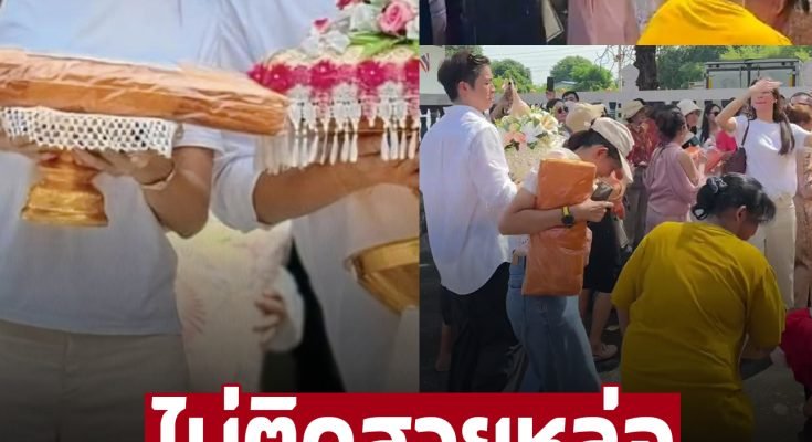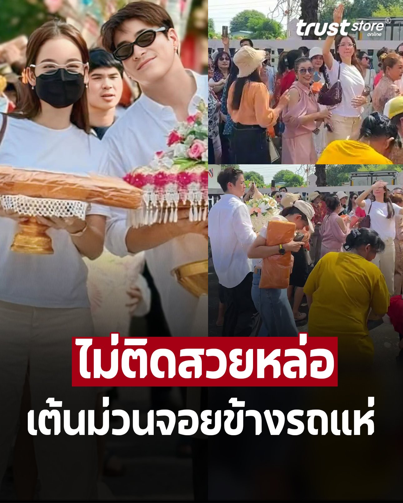ขวัญใจชาวบ้าน “อาเล็ก-โบว์” ร่วมบุญกฐิน ไม่ติดสวยหล่อม่วนจอยข้างๆ รถแห่