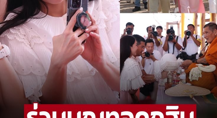 ออร่าแห่งบุญ “นุ่น-ต๊อด” ร่วมบุญทอดกฐิน ภาพงดงามกราบ “หลวงปู่ศิลา”