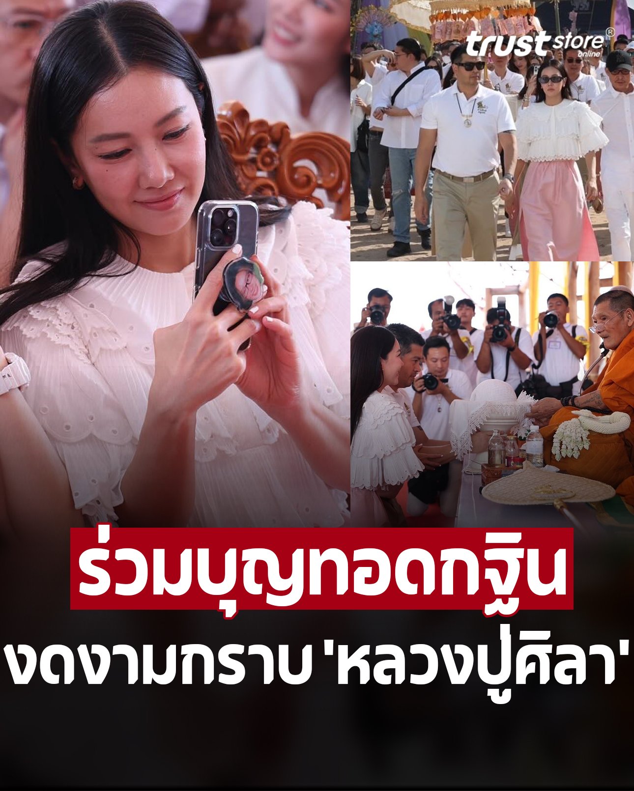 ออร่าแห่งบุญ “นุ่น-ต๊อด” ร่วมบุญทอดกฐิน ภาพงดงามกราบ “หลวงปู่ศิลา”