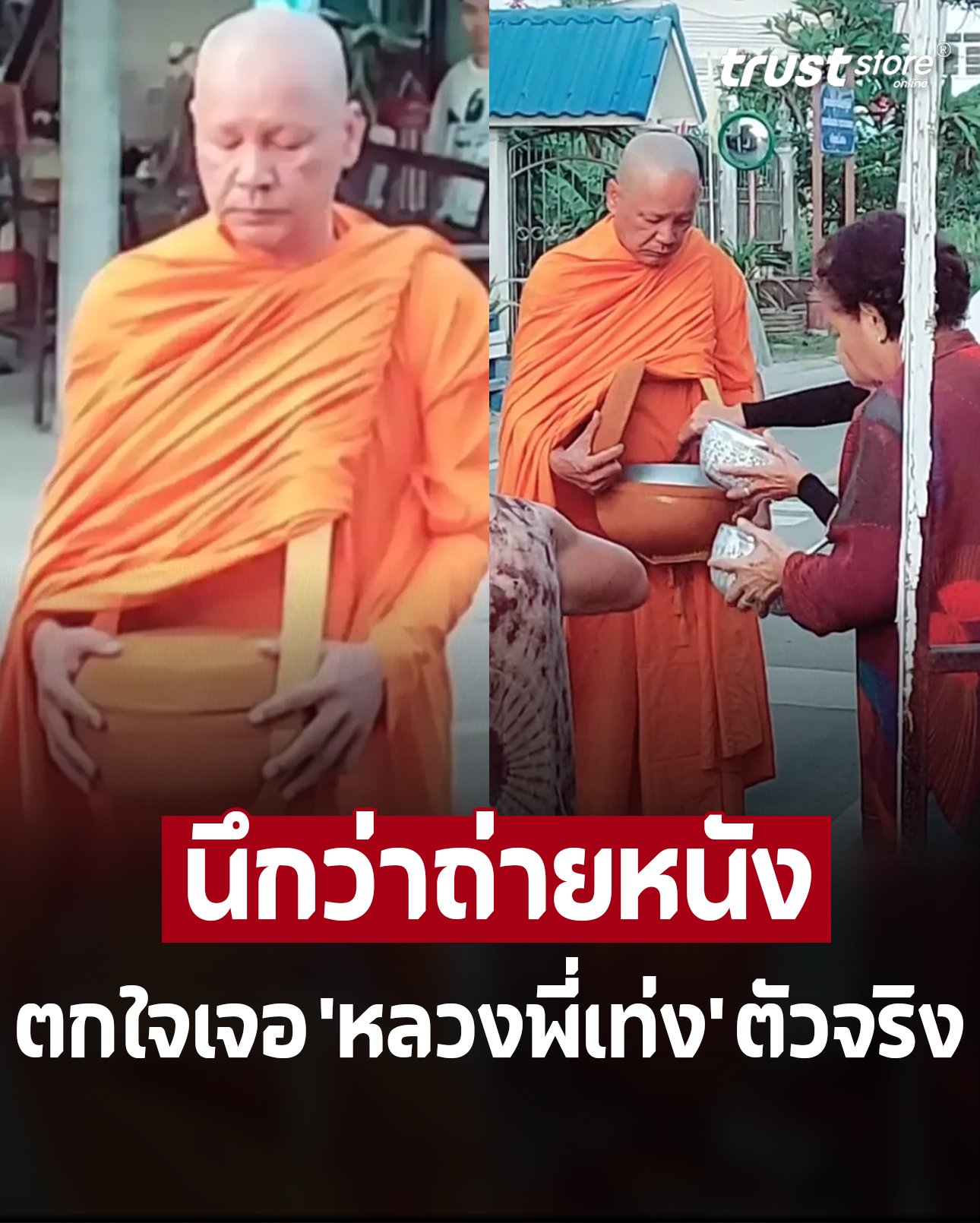 นึกว่าถ่ายหนัง ชาวเน็ตตกใจเจอ “หลวงพี่เท่ง” ตัวจริง ขณะรับบิณฑบาตจากญาติโยม